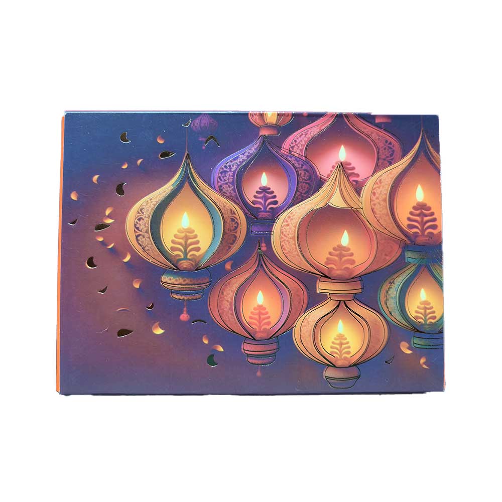 Special Diwali-themed gift box with festive images and premium metallic finish with colorful design.